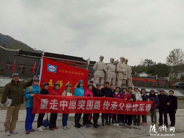 隨州網(wǎng)訊 本報(bào)記者 陳巧玲 通訊員 楊倩倩 今年是中原突圍勝利70周年。為緬懷先輩,弘揚(yáng)偉大的中原突圍精神,10月中下旬,北京新四軍研究會(huì)五師中原分會(huì)組織部分新四軍第五師后代,開展“重走中原突圍路,傳承父輩鐵軍魂”活動(dòng)。10月28日,考察團(tuán)一行走進(jìn)隨州,追尋先輩在這里浴血奮戰(zhàn)的足跡。 據(jù)了解,重走“中原突圍路”活動(dòng)的成員均為新四軍五師中原突圍部隊(duì)的后代,包括原新四軍五師王定烈 (原中原軍區(qū)第一縱隊(duì)二旅四團(tuán)團(tuán)長(zhǎng)、開國(guó)將軍、中國(guó)人民解放軍空軍原副司令員)的女兒王娟娟等新四軍五師后代一行近20人。考察團(tuán)一行自10月中旬從湖北大悟出發(fā),沿李先念部(二縱)突圍路線去,沿王樹聲部(一縱)突圍路線回,一路上憑吊戰(zhàn)場(chǎng)、尋訪戰(zhàn)爭(zhēng)遺址、參觀革命紀(jì)念館等。 在隨期間,考察團(tuán)先后參觀了隨州市曾都區(qū)洛陽(yáng)鎮(zhèn)九口堰革命舊址、九口堰新四軍第五師舊址紀(jì)念園等。他們一路聽著講解員的講解,用相機(jī)記錄著父輩的足跡,感受父輩們當(dāng)年戰(zhàn)斗和工作的環(huán)境,回憶著父輩戰(zhàn)斗的歷程。在九口堰新四軍第五師舊址門口,參加考察活動(dòng)的成員朱顏,左手拿著姥爺龐俊青年時(shí)代的黑白照片,右手按下快門,拍下一組特別的紀(jì)念照。 “這里也是他曾經(jīng)戰(zhàn)斗過(guò)的地方!”朱顏說(shuō),這次重走 “中原突圍路”活動(dòng)中,她隨身帶著姥爺?shù)恼掌康揭粋(gè)姥爺戰(zhàn)斗過(guò)的地方,都為他留一張影。 “這是一次意義非常的尋訪,紀(jì)念革命先烈,傳承先輩精神,提醒我們要不忘過(guò)去、不忘初心……”北京新四軍研究會(huì)五師中原分會(huì)副會(huì)長(zhǎng)李炎說(shuō),隨州是新四軍五師發(fā)展壯大的發(fā)源地之一,是老一輩曾經(jīng)戰(zhàn)斗過(guò)的地方,新四軍五師后代考察團(tuán)對(duì)這片熱土充滿感情。在九口堰新四軍第五師舊址紀(jì)念園,李炎代表考察團(tuán)一行捐贈(zèng)了他們的最新研究成果——《鐵流》系列叢書;隨州市新四軍歷史研究會(huì)也向考察團(tuán)回贈(zèng)了新研究成果——?dú)v史研究文獻(xiàn)《李先念在隨州》。李炎表示,要進(jìn)一步研究好、宣傳好革命歷史,將先輩們的革命意志和革命精神傳承下去,讓新四軍精神代代相傳! |