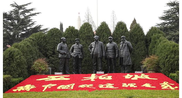 “陽春布德澤,萬物生光輝”,3月底的西柏坡,春意盎然。 1949年的三月,在成功指揮“三大戰役”、勝利召開黨的七屆二中全會后,毛澤東主席帶領中共中央從西柏坡啟程,踏上“進京趕考”之路。臨行前,毛澤東說我們都希望考個好成績。在2016年慶祝中國共產黨成立95周年大會上,習近平總書記指出,60多年的實踐證明,我們黨在這場歷史性考試中取得了優異成績。同時,這場考試還沒有結束,還在繼續。 西柏坡五大書記銅像。 為更好地傳承革命精神,繼續做好新時代“考試”的答卷,全面啟動慶祝新中國成立70周年新聞宣傳,中宣部28日在河北西柏坡舉行“壯麗70年·奮斗新時代”大型主題采訪活動啟動儀式。全國近百家媒體的新聞記者以及部分高校學生等約300人參加了儀式。儀式后,數百位新聞人將從西柏坡出發奔赴全國各地蹲點調研采訪,不忘初心、牢記使命,譜寫出無愧于時代的亮麗答卷。 中共中央政治局委員、中宣部部長黃坤明出席啟動儀式并講話。他指出,西柏坡是中國共產黨人革命的圣地、精神的高地,在這里舉行啟動儀式就是要尋根探源、追溯初心。他強調,要堅持以習近平新時代中國特色社會主義思想為指導,用心謳歌光輝歷程,用情展現人民奮斗,用功書寫精品力作,激發干部群眾愛黨愛國愛社會主義的真摯情感,凝聚新時代團結一心、艱苦奮斗的磅礴力量。