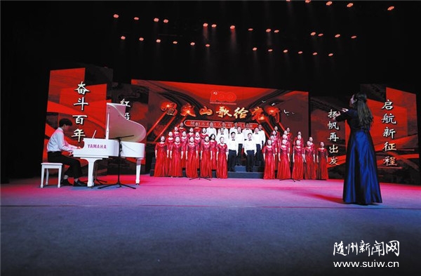 | 為慶祝建黨100周年,用歌聲頌唱偉大的中國共產黨,謳歌偉大的祖國和人民,4月28日晚,市委宣傳部、市文化和旅游局在神農大劇院舉辦了“唱支山歌給黨聽”群眾大合唱交流展演活動,向中國共產黨成立100周年獻禮。 (隨州日報全媒記者李文軍攝) |
