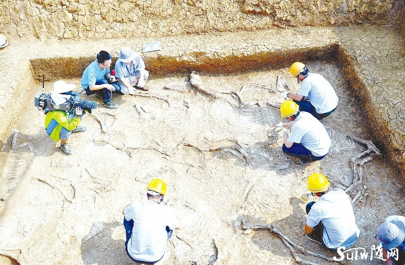 央視現場直播M111墓葬隨葬馬坑發掘過程。該馬坑是葉家山墓地7座馬坑中最大的一座,共隨葬10匹馬。 (記者 李文軍 攝) 葉家山墓地航拍圖。 (記者 李文軍 攝) 記者許享紅、張琴報道:至7月3日,隨州葉家山西周墓二期考古發掘,出土珍貴文物約500件(套),主要有銅器、原始瓷器和漆木器,發現的編鐘比曾侯乙編鐘早500年,距今約3000年;西周馬坑,也首次在我國南方地區發現。對此震驚世界的考古發掘工作,中央電視臺新聞頻道進行了首次現場直播,并還將連續直播。 |