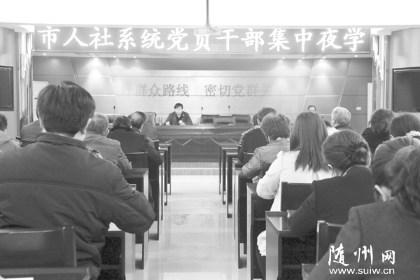 3月5日晚,市人社系統全體黨員、干部在市就業局樓六樓會議室參加了“夜學”活動。本次的夜學活動,市人社局專門邀請市委黨校副校長、副教授楊世勇作《踐行群眾路線、密切黨群關系》的專題講座。 (王 旭攝) |
