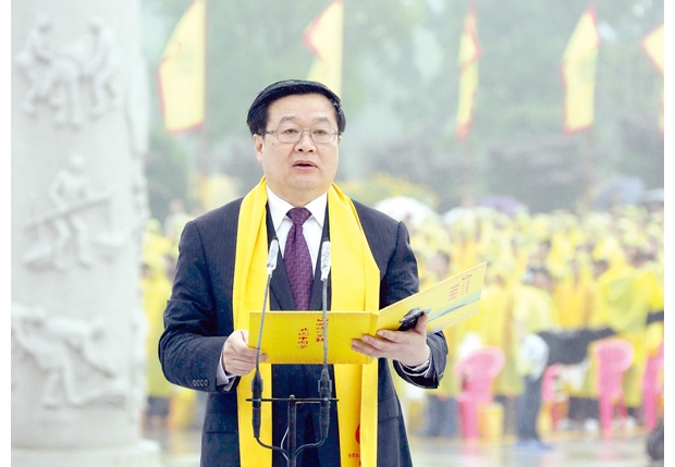 4、甲午年世界華人炎帝故里尋根節隆重舉行,學者專家縱論炎帝精神與中華文化 5月24日,農歷甲午年四月二十六,甲午年世界華人炎帝故里尋根節開幕式暨拜祖大典隆重舉行。大典主題延續保持為 “四海一家親,共圓中國夢”。何厚鏵、許嘉璐、蔣孝嚴、李鴻忠、王國生等,和來自海內外的近萬名炎黃子孫一起,拜謁中華民族的人文始祖炎帝神農,緬懷圣祖功德,祈愿國泰民安、人民幸福。尋根節期間,還舉行了海峽兩岸炎帝神農文化名家論壇,著名學者專家縱論炎帝精神與中華文化。海內外近萬名炎黃子孫會聚烈山共襄盛舉 甲午年世界華人炎帝故里尋根節隆重舉行 何厚鏵許嘉璐蔣孝嚴李鴻忠王國生等出席 圖一 全國政協副主席何厚鏵(左),省委書記、省人大常委會主任李鴻忠(右)恭啟圣門。 圖二 第十屆全國人大常委會副委員長、中華炎黃文化研究會會長許嘉璐宣布大典開幕。 圖三 省長王國生恭讀《頌炎帝文》。(本報記者 孫洪濤攝) 本報訊 記者陳曉林報道:拜謁烈山下,天佑大中華。2014年5月24日,農歷甲午年四月二十六,備受矚目的甲午年世界華人炎帝故里尋根節開幕式暨拜祖大典在湖北隨州隆重舉行。來自海內外近萬名炎黃子孫會聚烈山,拜謁中華民族的人文始祖炎帝神農,緬懷圣祖功德,祈愿國泰民安、人民幸福。 全國政協副主席何厚鏵,十屆全國人大常委會副委員長、中華炎黃文化研究會會長許嘉璐出席大典。 中國國民黨榮譽副主席蔣孝嚴,中國國民黨中評委主席團主席張榮恭,省委書記李鴻忠,省長王國生,國務院臺灣事務辦公室常務副主任葉克冬,中國文學藝術界聯合會副主席夏潮,全國紅色旅游工作協調小組辦公室常務副主任羅迪輝,中華炎黃文化研究會常務副會長張希清,中國社會科學院學部委員劉慶柱,省人大常委會黨組書記、常務副主任李春明,省委常委、常務副省長王曉東,省委常委、省委秘書長傅德輝、第十一屆省人大常委會副主任林志慧,副省長甘榮坤,省政協常務副主席范興元,省政協副主席陳天會,省炎帝神農故里建設基金會理事長李明波,市委書記劉曉鳴,市長郄英才等參加大典。 上午8時8分,在鳴鐘擊鼓聲中,大典開始。經過序禮、奉請儀式、奉祀祝詞等環節,大典進入拜祖儀式。副省長甘榮坤主持儀式。拜祖儀式共有九項儀程: ——大典致辭。省委常委、常務副省長王曉東致歡迎辭。他說, “今天,是華夏兒女尋根謁祖的盛大節日,來自世界各地的炎黃子孫會聚湖北隨州,用最莊重的禮儀拜謁中華民族共同的人文始祖炎帝神農。悠悠華夏文明史,巍巍烈山是源頭。5000多年前,炎帝神農在此初辟鴻蒙,發祥文明,繁衍族群,肇始華夏,為中華文明的綿延傳承奠定了千秋基業……” ——大典開幕。十屆全國人大常委會副委員長、中華炎黃文化研究會會長許嘉璐宣布大典開幕。 ——恭啟圣門。全國政協副主席何厚鏵和湖北省委書記李鴻忠共同開啟炎帝神農大殿圣門。緩緩流淌的《炎帝大歌》音樂聲中,來自全國各地的民間禮儀展示薈萃一堂,人們用各具特色的物產祭品向先祖進行“三獻禮”,表達對始祖炎帝神農的頌揚和緬懷。 ——點燃圣火。中國社會科學院學部委員劉慶柱、首屆全國道德模范吳天祥、美國佐治亞州立大學孔子學院院長顧寶桐共同點燃圣火。 ——敬獻花籃。各級領導和嘉賓何厚鏵、許嘉璐、蔣孝嚴、葉克冬、夏潮、羅迪輝、張希清、李鴻忠,王國生,李春明,范興元、陳鵠、董良羽、劉曉鳴、郄英才等分批敬獻花籃。 ——敬獻高香。港澳臺人士、企業家、社會知名人士、華人華僑等各界代表蔣孝嚴、張榮恭、舒心、葉志一、劉純清、鄺遠平、陳義紅、方雕義、汪大華、簡省三、葉陳素玲、呂聯苗、李明波、熊召政、桑吉章、萬謙、徐本一、蔡少林、張庚富、張新斌、盤建軍、張杰、王延光、張翔、王建軍、張彥文、王建明、甘臣雄、韓泊廷、劉俊剛、劉寶林、徐德、釋印順、李光富、吳誠真等依次敬獻高香。 ——恭讀頌祖文。省人民政府省長王國生恭讀《頌炎帝文》:時維甲午,序近端陽。烈山之巔,鳳舞云翔。赤子龍裔,再聚帝鄉,慶始祖之華誕,頌拜謁之典章……(全文另發) ——共拜始祖。現場全體人員向炎帝神農鞠躬行拜謁禮。 ——唱誦始祖。東北農民歌王馬廣福、西北農民歌王王向榮、湖北土家歌王王愛華領銜百名農民歌手同聲高歌《炎帝頌》,將現場氣氛推向高潮。隨后,湖北楚劇、漢劇、黃梅劇、京劇四大劇種藝術家聯袂演唱《天佑中華》,激勵中華兒女開啟新征程,迎接新挑戰,早日實現中華民族的偉大復興。 9時29分,在熱烈祥和的氣氛中,簡樸而隆重的甲午年炎帝故里尋根節拜祖大典告成。 據悉,本屆大典由國務院臺灣事務辦公室、中國文學藝術界聯合會、國務院僑務辦公室、中華炎黃文化研究會、湖北省人民政府共同主辦。大典主題延續保持為“四海一家親,共圓中國夢”。 中央電視臺中文國際頻道、湖北衛視、隨州電視臺、央視網、新浪網、荊楚網,以及國內外主流華語廣播、網站、微博同步直播了大典盛況。 |