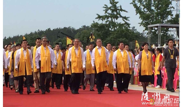 中國國民黨中央評議委員會主席團主席張榮恭,中共湖北省委書記、省人大常委會主任李鴻忠,湖北省政協主席楊松,海峽兩岸關系協會副會長孫亞夫,中國文學藝術界聯合會副主席、書記處書記楊承志,中華全國歸國華僑聯合會副主席康曉萍,中華炎黃文化研究會常務副會長兼秘書長張希清,衛生部原副部長、世界中醫藥學會聯合會會長佘靖,省領導李春明、傅德輝、梁偉年、甘榮坤、劉善橋,省老領導李明波、林志慧,陜西省政府原副省長吳登昌,海峽兩岸旅游交流協會秘書長劉克智,中國科學院院士陳可冀,中國工程院院士李連達,泰國國防宗教文化部副主席周力平,全美華裔總商會主席梁冠軍,香港特區政府駐漢代表方明遠,澳門特區政府駐京代表束文剛,臺灣苗栗縣前縣長劉政鴻,中國國民黨中央委員會常務委員曾文培,中國國民黨中央委員會委員翁文斌、詹昭榮,臺灣中華神農大帝協進會副理事長方雕義,抗戰老兵靳明、孫維禮,中共隨州市委書記劉曉鳴、市長郄英才等參加大典。
