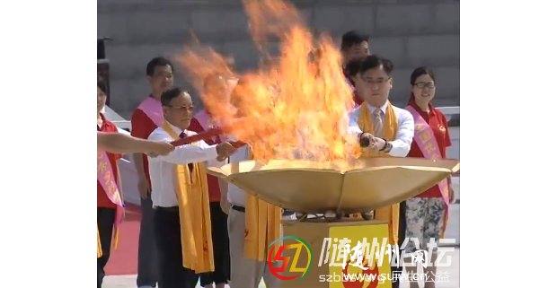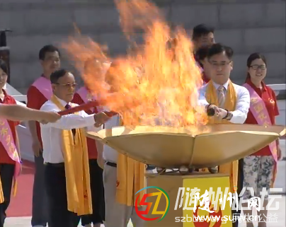 ——點燃圣火。在《三獻禮》的唱誦樂舞聲中,中國科學院院士陳可冀、香港特區政府駐漢代表方明遠、澳門特區政府駐京代表束文剛、臺灣中華神農大帝協進會副理事長方雕義和來自全國的30名鄉村教師共同點燃炎帝圣火。