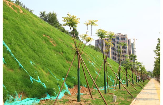 “這種技術叫做掛網噴播,在我市城市道路綠化中首次采用。”廖悅銘說。