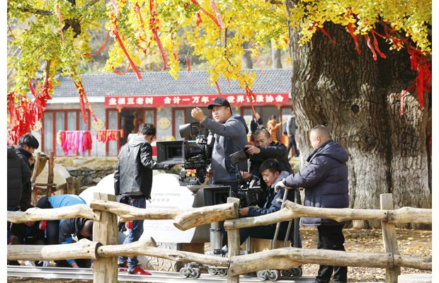 當天,電視劇《界線》劇組來到千年銀杏谷進行拍攝取景。劇組工作人員在景區里的長壽樹下布置片場,閑暇之余紛紛拿出手機與長壽樹合影留念。“2300多年歷史的古銀杏,真壯觀。”