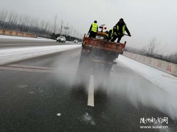 隨州新聞網訊 連日來,氣溫突降,道路結冰,給返程客流帶來不便和安全隱患。曾都公路局迅速行動,多措并舉,除冰雪、清路障,保障公路暢通和市民出行安全。(隨州日報全媒體記者唐天才、通訊員孫東攝)