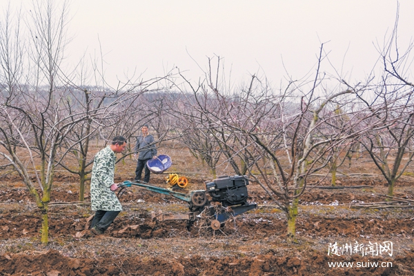隨州新聞網訊 隨著天氣轉暖,我市各地搶抓農時春耕備耕。圖為2月24日隨縣唐縣鎮魯城河村果農正在果園翻耕施肥,為果子豐收打好基礎。(隨州日報全媒體記者 李文軍攝)