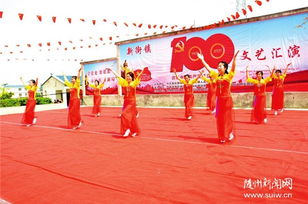 近日,隨縣新街鎮(zhèn)舉辦慶祝建黨100周年文藝匯演,利用文藝的形式拓展黨史學習教育。圖為村民表演的廣場舞。(隨州日報通訊員石守京攝)