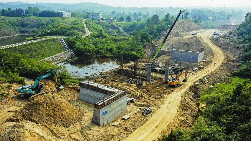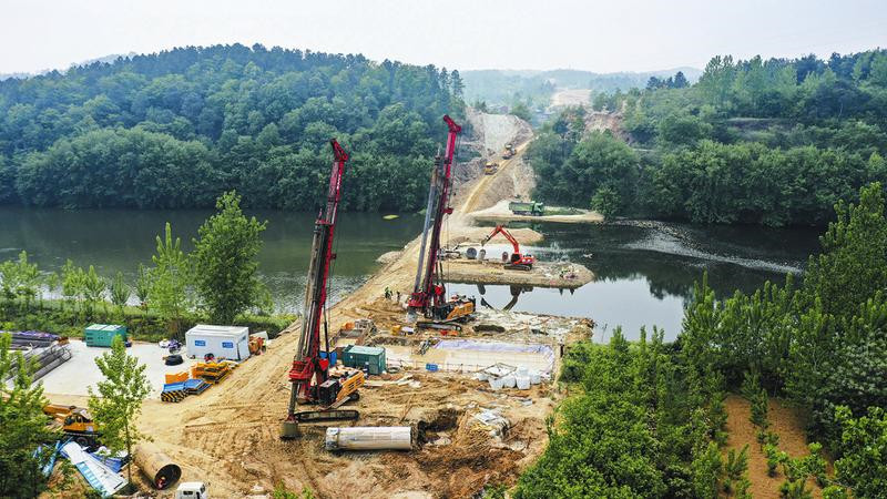 4月19日,隨州南外環道路建設現場,工人們有的在架設橋墩、有的在鋪設路基涵管、有的在挖掘拖運土石方,各種工程車來回穿梭,一派熱火朝天的建設景象。