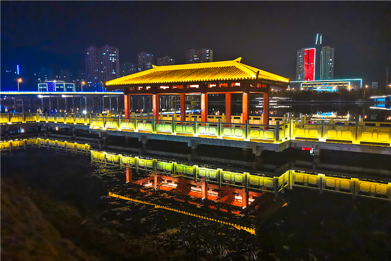 春節(jié)期間,我市一河兩岸燈光璀璨,將城市裝扮的分外美麗。(全媒記者 孫洪濤攝)