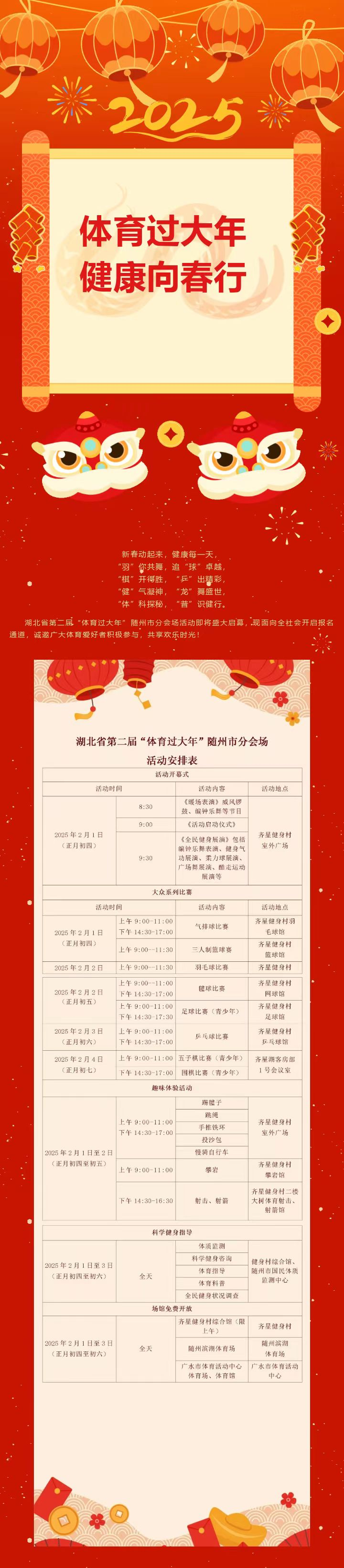 “體育過大年 健康向春行”——湖北省第二屆“體育過大年”隨州市分會場活動報名通道開啟