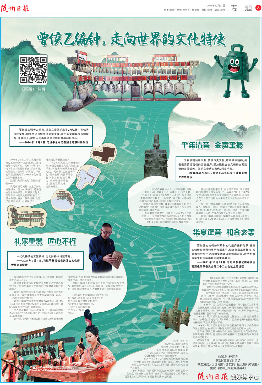 作為古代人類文明的璀璨明珠,曾侯乙編鐘在人類文化史、音樂史、科技史等領(lǐng)域占有重要地位。現(xiàn)如今,這穿越千年的“國家寶藏”向世界展示著中華文化的獨特魅力,成為增進中外友誼、促進世界文化交流的特使。