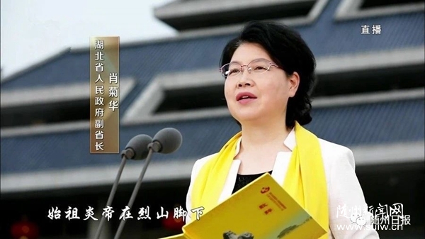 肖菊華代表省人民政府和6000多萬湖北人民,向以不同形式關心、支持、參加庚子年世界華人炎帝故里尋根節視頻拜謁炎帝神農大典的各位領導、各界朋友,表示熱烈歡迎并致以崇高敬意。她說,始祖炎帝自強不息、厚德載物的崇高品格,早已融為中華民族的精神基因,激勵著一代又一代炎黃子孫砥礪前行、不懈奮斗。面對突如其來的新冠肺炎疫情,億萬中華兒女上下一心、眾志成城,推動湖北保衛戰、武漢保衛戰取得決定性成果,全國疫情防控阻擊戰取得重大戰略成果,充分展現了中國力量、中國精神、中國效率,充分展示了堅不可摧的中華民族共同體意識,充分彰顯了炎帝精神歷久彌新的強大生命力。今天,我們共賀炎帝誕辰,緬懷始祖偉績,就是要弘揚中華民族偉大精神,抒發中華兒女昂首再啟程、共筑中國夢的壯志豪情!我們堅信,只要全體炎黃子孫風雨同舟、命運與共,攜手并進、團結奮斗,中華民族必將以嶄新姿態屹立于世界的東方!