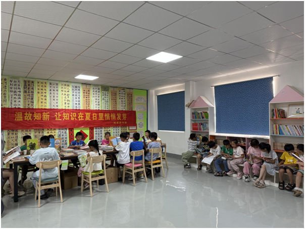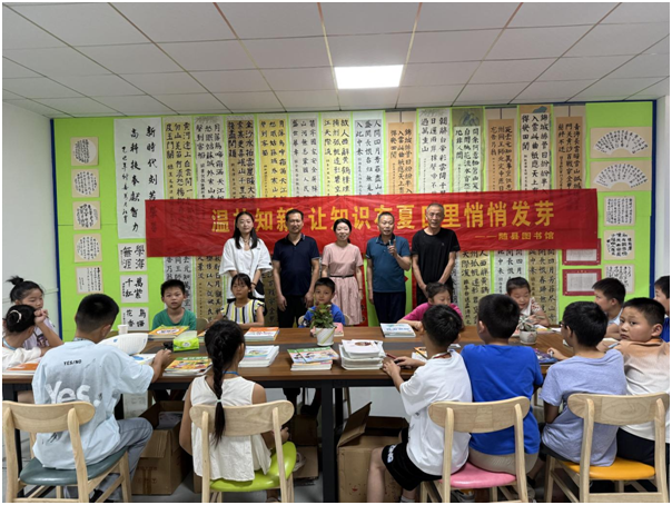此次贈送的300本書籍涵蓋多個領域,既有培養想象力的繪本故事,也有啟迪智慧的科普讀物,既包含守護安全的生活指南,也收錄了傳承文化的經典詩詞。這些書籍如同一個個無聲的導師,將陪伴孩子們在知識的海洋中遨游,正如橫幅上所說,讓知識在這個夏日悄悄發芽,在孩子們心中扎根生長,幫助他們拓寬視野、增長見識,讓“溫故而知新”的理念融入日常學習中。