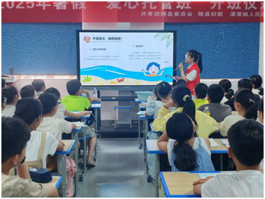 隨州新聞網訊 (通訊員邱健倫、劉春慧)為織密青少年暑期安全防護網,近日,澴潭鎮新時代文明實踐所在鎮中心學校校外輔導站組織一場防溺水安全宣講小課堂,為40余名中小學生送上關鍵一課。