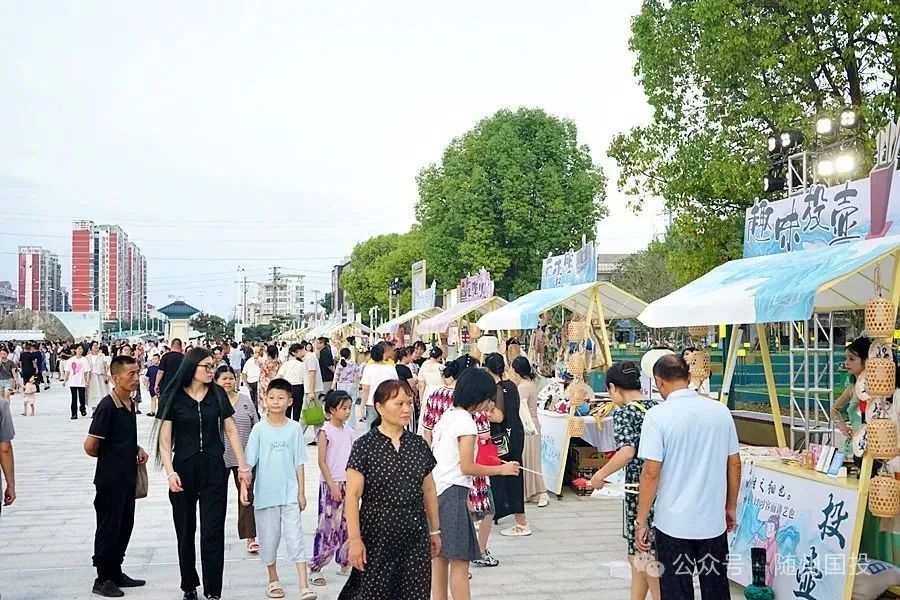 隨州博物館廣場前的夏日狂歡,主打“古風”“文博潮玩”,“水”元素只是錦上添花。主舞臺區編鐘雅樂重現、古風舞蹈快閃、非遺技藝展演,好戲連臺;市集區30多個攤位包含文創手作、非遺體驗、特色美食,琳瑯滿目。游客還可通過打卡集章兌換限定文創,將文化打包帶走。