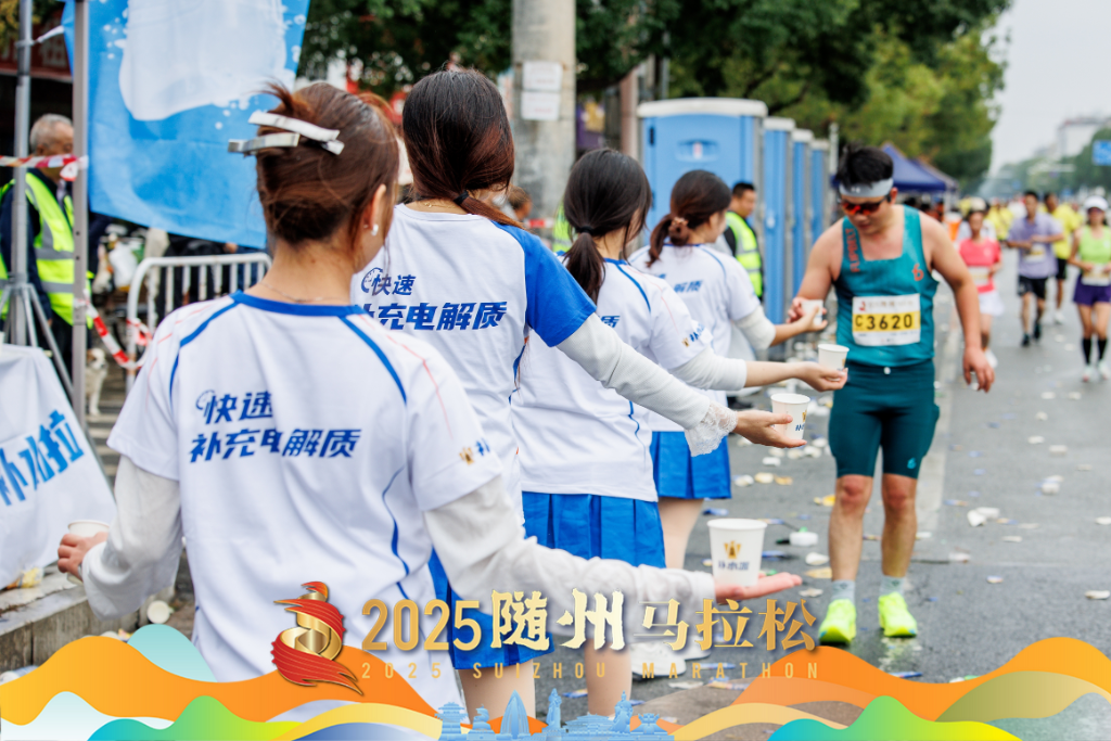 健民藥業的員工們為選手們倒水千余杯,市中醫醫院帶來了特制的跌打損傷膏藥,隨州郵政的小伙伴們守在涢水一橋上……隨州企業、單位等紛紛在賽道沿線設置補給站,為跑者們送上補給,提供志愿服務。賽道終點,正大食品的炸雞塊、虎福瑞的蜂蜜麻花等隨州特色,為選手補充能量。