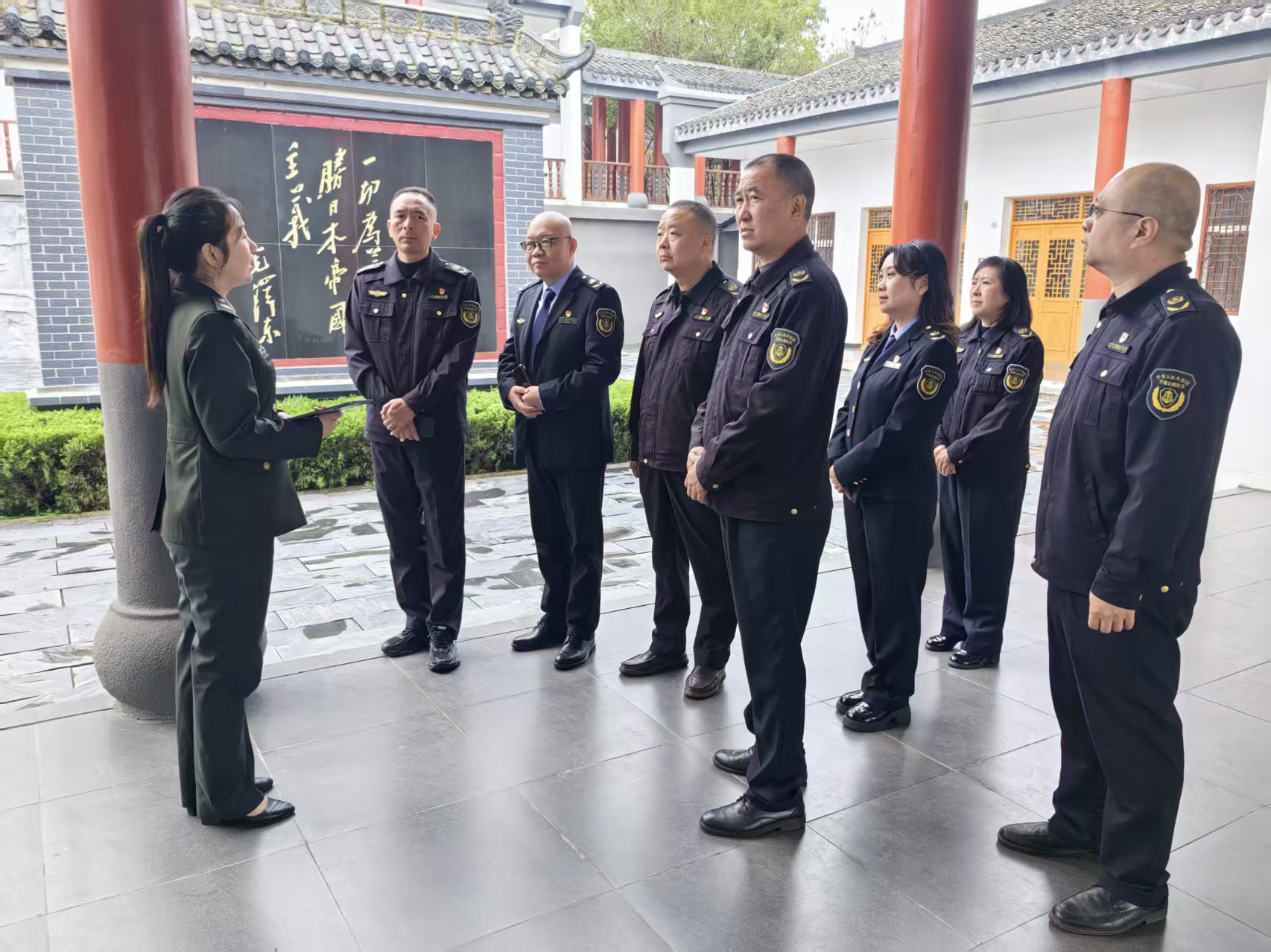 在紀念園內(nèi),一幅幅泛黃的歷史圖片、一件件承載歲月的革命文物,生動再現(xiàn)了李先念等老一輩革命家在隨州這片熱土上抗擊日寇、救亡圖存的崢嶸歲月。黨員們循著革命先輩的足跡緩步前行,認真聆聽抗日斗爭史實講解,在珍貴史料中感悟紅色血脈的厚重底蘊,在先烈事跡中汲取奮進力量,深刻體會到“執(zhí)法為民”的初心源于革命年代的為民情懷,“紀法嚴明”的作風(fēng)傳承自鐵軍隊伍的紀律基因。