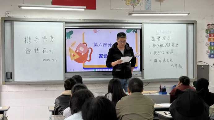 為了確保家長會的順利召開,各班級精心布置教室,精心制作的課件、黑板上的歡迎標語、擺放整齊的課桌……無不彰顯著老師們的用心與熱情。
