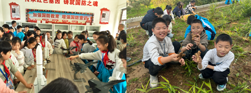 早上八點(diǎn)校門口集合,進(jìn)行行前動(dòng)員講話,強(qiáng)調(diào)途中的安全,靠右行走,文明出行,到達(dá)后同學(xué)們零距離觀摩國(guó)防裝備模型,分批參觀基地里的瓜果蔬菜,近距離觀察植物生長(zhǎng),與學(xué)科融合,分組完成“摘一挖一撿”——摘辣椒、挖生姜、撿枯枝落葉。辣椒地里,孩子們左手握柄、右手輕擰,一串串“紅燈籠”落進(jìn)籃子;生姜壟旁,大家蹲身、刨土、拔莖,體驗(yàn)“姜還是老的辣”的泥土力量;林間小道,枯枝落葉被扎成捆,堆在角落。