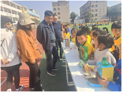 唐縣鎮中心學校校長吳小林等多位領導深入每一個展區,他們頻頻在學生作品前駐足,仔細觀看作品細節,饒有興致地聆聽小講解員的介紹,對同學們展現出的科學素養、動手能力和創新精神給予了高度評價。