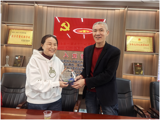 最后,校長華星對宋老師多年來為學校發展作出的貢獻給予了高度評價,并代表學校向她頒發了退休榮譽證書和紀念品。他強調,宋老師是學校的寶貴財富,她的教育精神與師德風范將繼續激勵著全體教師不忘初心、砥礪前行。