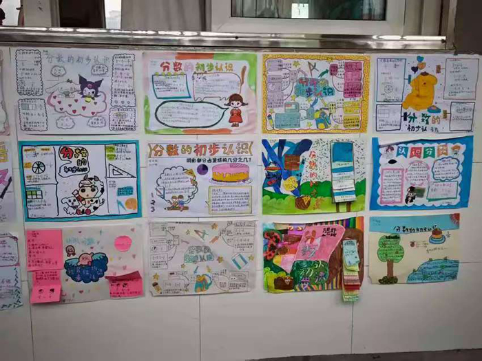 以“認識分數”知識點為例,三(1)班學生通過親手繪畫制作,將抽象數學概念轉化為蛋糕、西瓜、彩紙等分實踐,還融入卡通元素設計。這種方式讓學生在實踐中收獲滿足感,更扎實掌握了所學知識。