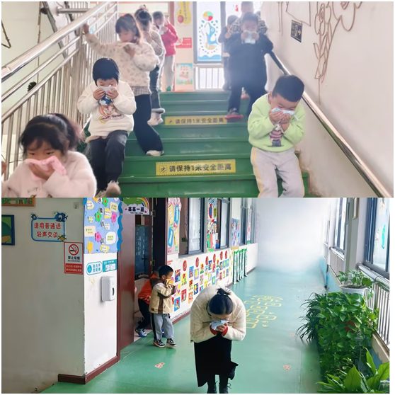 演練前,老師通過生動的動畫、有趣的兒歌,向小朋友們講解了消防安全知識。“火災來了怎么辦?”“用濕毛巾捂住口鼻,彎腰走安全通道。”小朋友們聽得認真,記得牢,一個個都成了“安全小衛士”。警報聲響起,孩子們在老師的帶領下,不推不擠,快速有序地從教室撤離到安全地帶。看,他們一個個眼神堅定,動作標準,就像真正的消防員一樣勇敢!