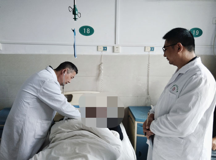 督導途中,意外驟然降臨——花灣村衛生室一名孫姓患者輸液時突發昏迷,伴鼾聲呼吸、小便失禁,病情危急萬分!千鈞一發之際,肖開韜當即中止督導工作,第一時間靠前坐鎮指揮,沉著精準調度現場資源。他密切關注患者身體情況,輕聲安撫慌亂的患者及家屬,始終堅守診療一線統籌協調,直至患者病情趨于平穩、被何店鎮中心衛生院120救護車安全轉運,才放心離開現場。