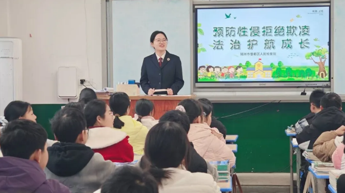 隨州新聞網(wǎng)訊 (通訊員李雨薇、羅鋮)近日,曾都區(qū)人民檢察院“寒冬護(hù)‘未’·檢愛同行”系列法治宣講活動(dòng)第一階段圓滿結(jié)束。為在寒假前增強(qiáng)未成年人安全意識(shí)和自我保護(hù)能力,筑牢未成年人安全防護(hù)網(wǎng),曾都區(qū)人民檢察院聯(lián)合區(qū)教育局、區(qū)婦聯(lián)等部門啟動(dòng)了“寒冬護(hù)‘未’·檢愛同行”系列法治宣講活動(dòng)。活動(dòng)中,“鹿萱和鳴”未檢工作室法治宣講團(tuán)走進(jìn)轄區(qū)鄉(xiāng)鎮(zhèn)學(xué)校,用生動(dòng)有趣的法治課堂,為孩子們送上一份干貨滿滿的寒假安全指南。