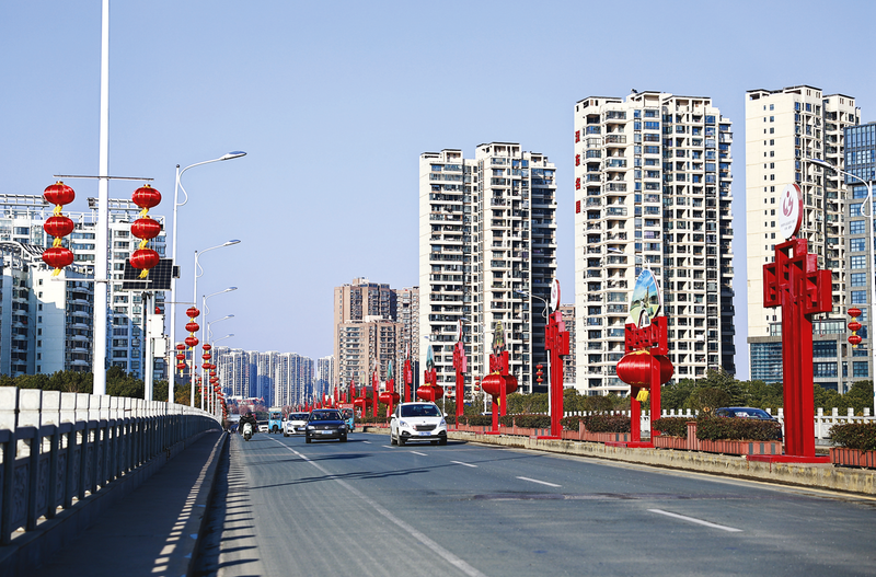 馬年新春佳節來臨之際,為營造喜慶、祥和、歡樂的節日氛圍,我市(含隨縣、廣水、曾都區和高新區)在城市道路、橋梁、廣場、公園、特色街區和交通點位,懸掛燈籠2萬余個,擺放鮮花綠植16萬余盆,打造節慶景觀點18個,以清新優美的市容環境迎接新年的到來。圖為隨州城區府河大橋景觀。