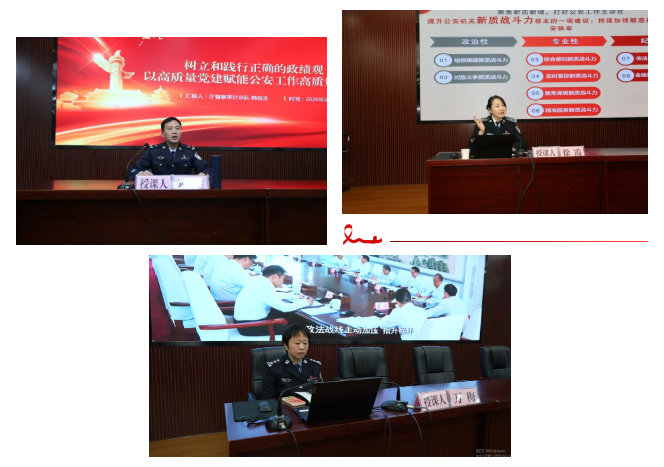 培訓課程精準對接政治需求、實戰需求,邀請省公安廳督審總隊政委韓自主作《樹立和踐行正確的政績觀,以高質量黨建賦能公安工作高質量發展》專題輔導,湖北警官學院教授徐霞圍繞《新條令新亮點新要求—新修訂<公安機關人民警察內務條令>解讀》《堅持黨對公安工作的絕對領導》開展專題授課,以權威解讀、專業講解,為全警筑牢思想根基、規范日常行為、提升履職能力奠定堅實基礎。同時,組織集中學習違紀違法典型案例、觀看警示教育片,引導全體參訓民警深刻汲取教訓、時刻自重自省,始終保持對黨紀國法的敬畏之心,永葆忠誠干凈擔當的政治本色。