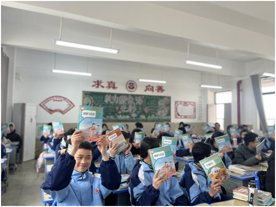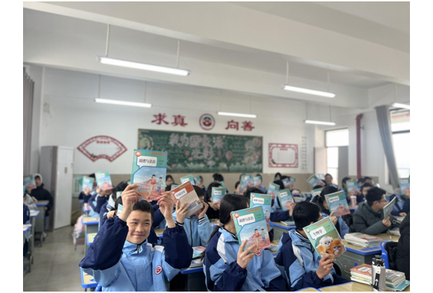 8點(diǎn)半,各班級(jí)教室里,班主任早已將黑板布置得溫馨——“歡迎回家”“新學(xué)期,新起點(diǎn)”的粉筆字格外醒目。開(kāi)學(xué)第一課如期而至。學(xué)生們以積極心態(tài)投入學(xué)習(xí)。課間,最令學(xué)生期待的環(huán)節(jié)開(kāi)始了。在班主任帶領(lǐng)下,幾名高個(gè)子男生主動(dòng)承擔(dān)起“搬運(yùn)工”的任務(wù),將一摞摞飄著墨香的新教材搬進(jìn)教室。一本本嶄新的課本分發(fā)到手中,孩子們迫不及待地翻閱,臉上露出抑制不住的興奮。“拿到新書(shū)就像收到一份禮物!”八年級(jí)一位女生笑著說(shuō)。