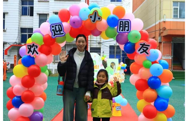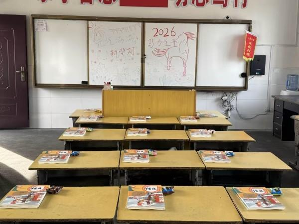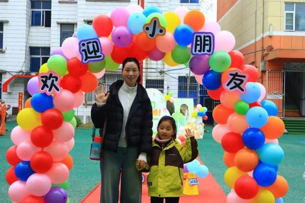 教室里,老師們更是早早地將學生的新書整齊地擺放到學生桌面上,并送上一份小小的新年禮物。幼兒園里,老師們別有心裁地搭建了彩門,萌娃們紛紛帶著家長來打卡留念。
