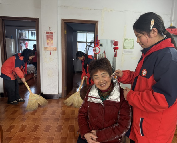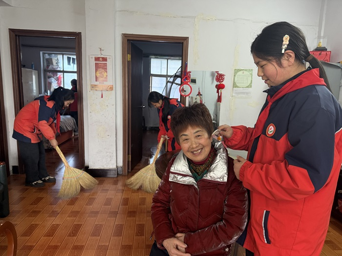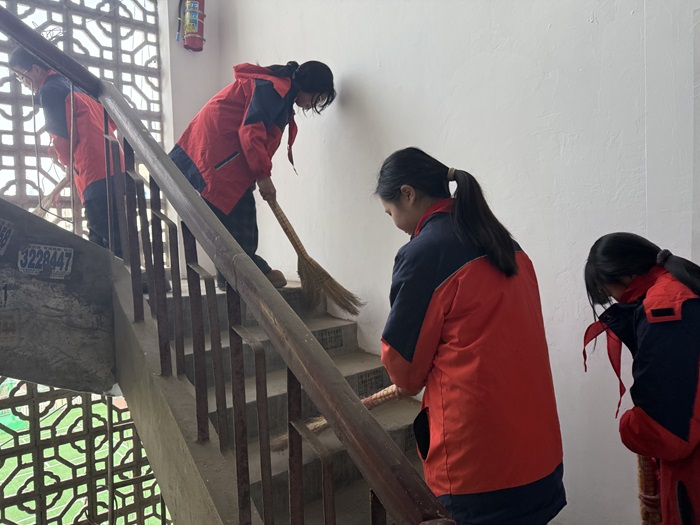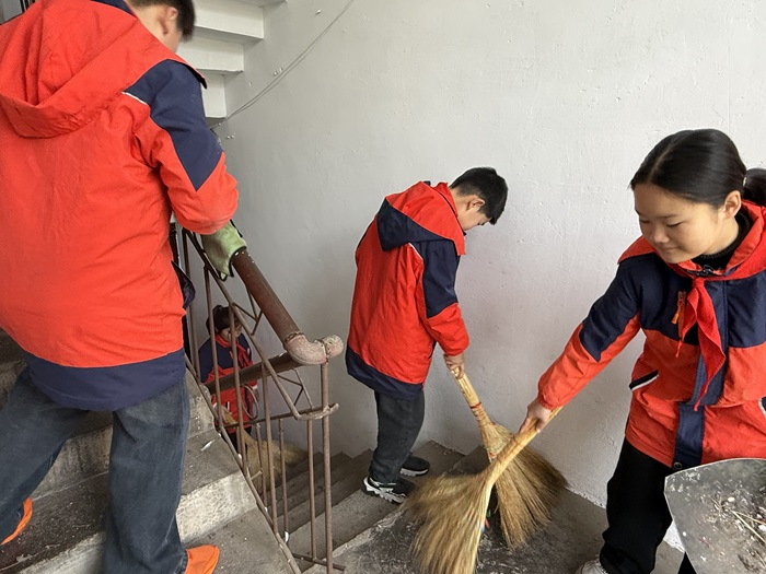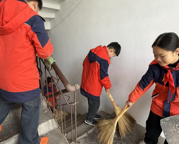 活動中,同學(xué)們分組行動。關(guān)愛老人組走進小區(qū)老人家中,幫忙打掃衛(wèi)生、整理房間,陪老人聊天解悶。樓道清掃組對小區(qū)樓梯進行細(xì)致清理,掃除垃圾、擦拭扶手,不放過一個角落。校園周邊組撿拾綠化帶雜物,擺放亂停放的共享單車,讓環(huán)境更加整潔有序。
