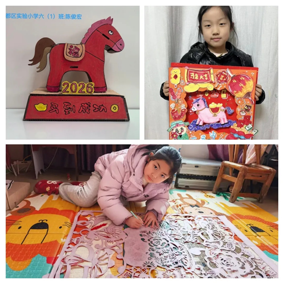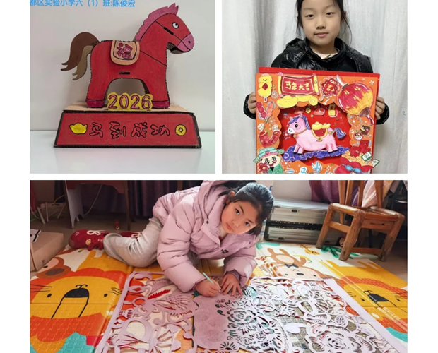 假期里,少先隊員們化身多樣角色,收獲滿滿。勤馬持家,主動承擔家務、堅持運動,在勞動中感恩,在鍛煉中強體魄;智馬慧學,親子共讀、臨帖練字、觀察自然,在書香與探索中增長智慧;忠馬愛國,走進紅色基地、參與志愿服務,美化家園、奉獻社會,厚植家國情懷;祥馬賀歲,寫春聯、做手作、剪非遺,傳承中華優秀傳統文化。