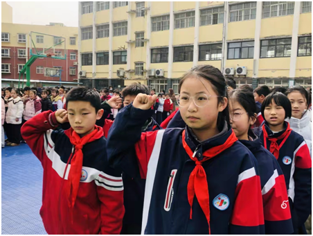 活動當天上午,全體師生齊聚校園操場,舉行主題隊會暨活動動員儀式,正式拉開本次學雷鋒系列活動的序幕。儀式上,六(1)中隊代表登臺演講,結合抗疫志愿者事跡、身邊好人好事等新時代雷鋒故事,生動詮釋雷鋒精神的時代內涵,真摯的話語讓在場師生深受觸動。副校長唐政為活動作寄語,深入解讀雷鋒精神的時代意義,并向全體師生提出“五個一”行動要求:幫一次同學,做一件家務,護一片環境,獻一片愛心,守一份誠信,鼓勵大家從身邊小事做起,將雷鋒精神融入日常學習與生活,以點滴善舉凝聚文明力量,助力優化營商環境。隨后,全體師生舉起右拳,齊誦學雷鋒倡議書,鏗鏘有力的誓言回蕩在校園,凝聚起人人爭當“小雷鋒”的濃厚氛圍。