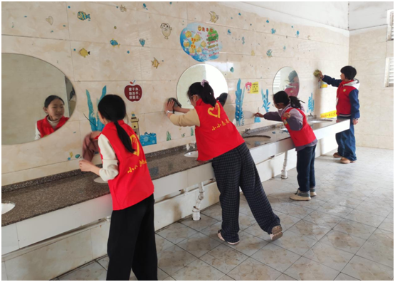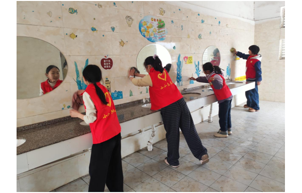 活動中,小志愿者們分工明確、干勁十足。大家手持抹布、掃帚、垃圾袋等工具,認真投入勞動:在校園廁所,隊員們細心擦拭墻壁、清潔宣傳畫、拖洗地面,不放過一處污漬、不留一個衛生死角;在校園花壇,大家彎腰俯身,仔細撿拾有色垃圾,耐心清理花箱周邊雜草,讓校園綠化區域更整潔美觀。