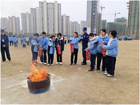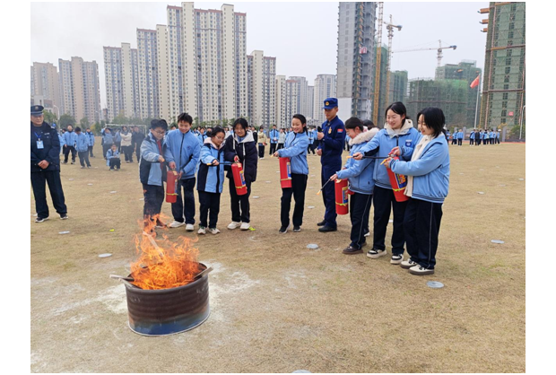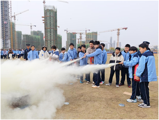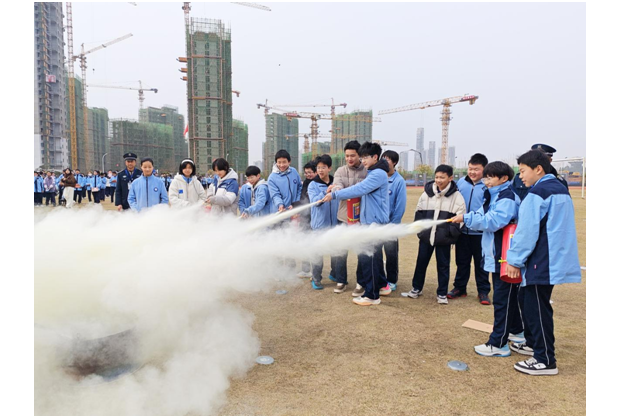 實操現場氛圍熱烈而有序,學生們認真投入、大膽嘗試,保安和食堂工作人員則結合崗位特點,重點強化實操技能,均熟練掌握滅火器使用方法,應急處置能力得到顯著提升。