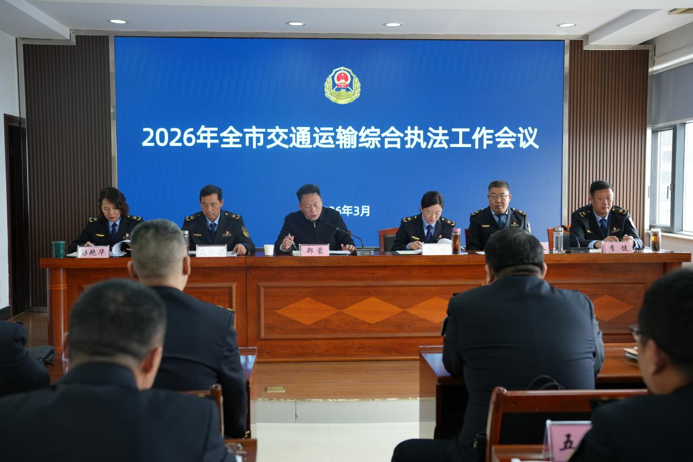 3月9日,2026年全市交通運輸綜合執法工作會議召開。會議以習近平新時代中國特色社會主義思想及黨的二十大和二十屆歷次全會精神為指導,全面貫徹落實市委、市政府,省交通運輸廳及省市局工作部署,系統總結“十四五”收官成效與2025年工作實績,交流工作經驗,精準錨定“十五五”規劃發展藍圖,周密部署2026年重點任務,動員全市交通運輸綜合執法干部職工以更高標準、更實作風、更優服務,奮力推動全市交通運輸綜合執法工作向現代化深度跨越。市交通運輸綜合執法支隊黨委書記、支隊長殷婧作工作報告,市局黨組成員、副局長鄭蒙出席會議并講話。隨縣、廣水市交通運輸綜合執法大隊班子成員及支隊全體執法人員參加會議。