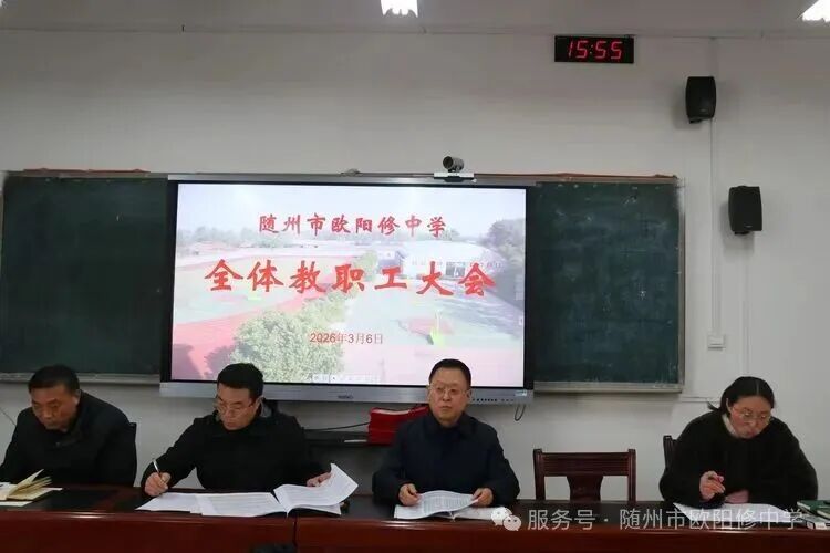 隨州新聞網(wǎng)訊 (通訊員余軍威)春回大地,萬象更新。為明確新學(xué)期工作方向,凝聚全體教職工奮進力量,確保各項工作高效、有序開展,3月6日,歐陽修中學(xué)召開了2026年上學(xué)期全體教職工大會。
