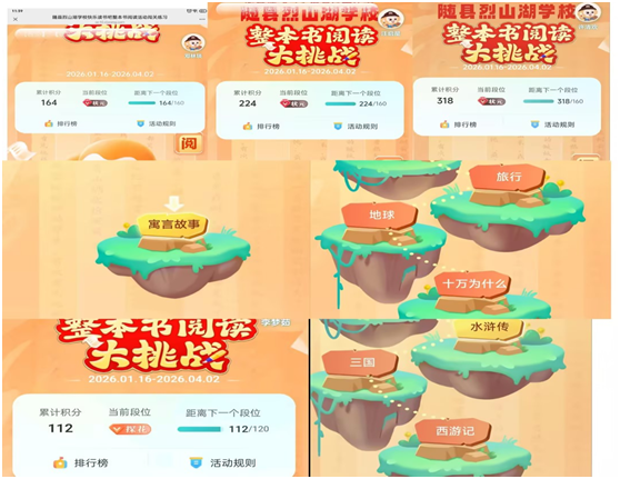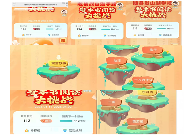 隨州新聞網訊 (通訊員吳夢陽)為深耕“見素抱樸,如琢如磨”的校訓精神,落實新課標“快樂讀書吧”閱讀要求,營造濃郁書香校園氛圍,隨縣烈山湖學校以“琢文化”為引領,在剛過去的寒假期間組織師生開展整本書閱讀系列活動,以閱讀雕琢心靈,以書香浸潤成長。