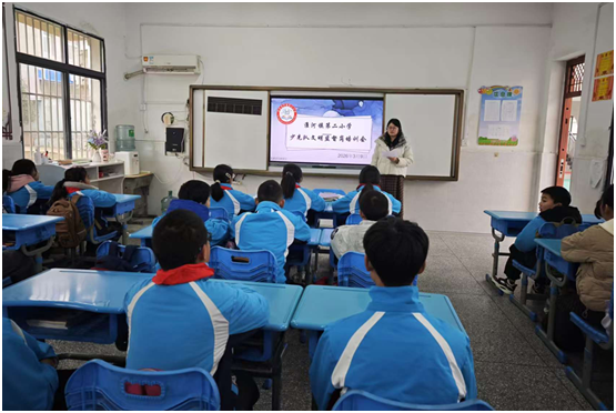 隨州新聞網(wǎng)訊(通訊員陳葦)為進(jìn)一步加強(qiáng)校園文明建設(shè),發(fā)揮少先隊(duì)員自主管理作用,營造安全、文明、和諧的校園環(huán)境,3月9日上午,淮河鎮(zhèn)第二小學(xué)少先隊(duì)大隊(duì)部組織開展新學(xué)期少先隊(duì)文明監(jiān)督崗崗前專題培訓(xùn),全體紅領(lǐng)巾監(jiān)督崗隊(duì)員參加此次培訓(xùn)。