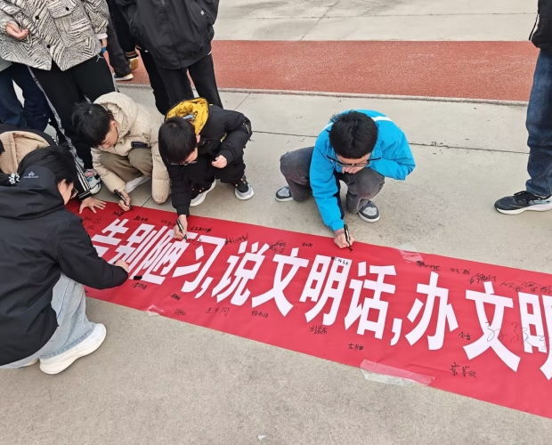 儀式上,德育處宣讀活動方案,明確文明課堂、課間、餐桌等實踐要求。學(xué)生代表發(fā)出倡議,號召從問好、守序、護(hù)綠等小事做起,讓文明內(nèi)化于心、外化于行。在主題橫幅前,同學(xué)們有序簽名,落筆即是踐行文明的莊重承諾。學(xué)校本月將開展主題班會、文明標(biāo)兵評選等活動,推動文明禮儀融入日常,共建和諧校園。