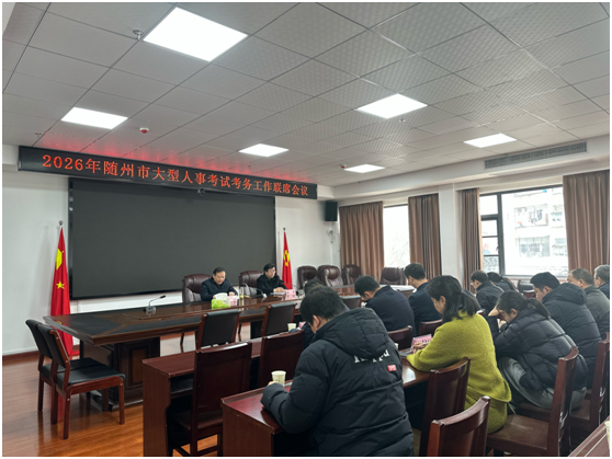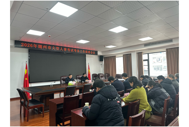 隨州新聞網(wǎng)訊 (通訊員袁臘梅)近日,我市召開2026年大型人事考試考務(wù)工作聯(lián)席會(huì)議,會(huì)議由市人社局黨組成員、副局長蔡洋主持,市委組織部副部長金鑫出席會(huì)議并講話,各聯(lián)席會(huì)議成員單位及考點(diǎn)學(xué)校相關(guān)負(fù)責(zé)人參加會(huì)議。會(huì)議總結(jié)前一階段人事考試工作成效,分析當(dāng)前工作面臨的新形勢、新任務(wù),部署今年考務(wù)重點(diǎn)工作,明確各單位協(xié)作職責(zé),凝聚起齊抓共管的工作合力。