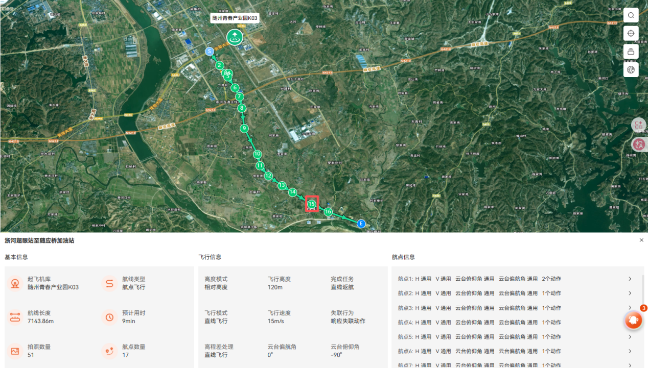 該試點項目以淅河超限站為中心,依托大數據集團無人機公共機艙的智能化支撐,搭載高清變焦攝像頭與定制化AI智能分析系統,構建“自主巡航—智能識別—數據回傳”的全流程自動化巡查體系。無人機按預設航線定時啟動巡航任務,對規劃路段進行常態化自動巡查,通過AI算法實現智能識別、自動標注與分類上傳,生成包含位置樁號、問題影像的數字化臺賬,針對侵占路產和侵害路權等違法行為,為執法人員精準處置提供直觀數據支撐。
