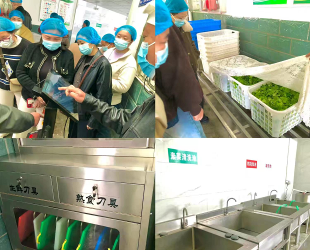 在后勤主任王屹立的帶領與講解下,代表們實地了解食堂食材采購、加工制作、食品留樣等全流程管理細節。食堂內葷素清洗池、生熟刀具嚴格分區,工用具落實色標管理與消毒定位,食材供應商信息實時公示,每一個規范操作的環節,都彰顯著學校對校園食安的嚴謹態度,讓代表們直觀感受到校園食堂的“透明化”與“規范化”。