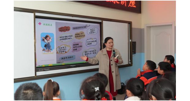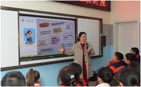 講座中,喻曉玲引導孩子們回顧在學習和生活中曾遇到的困難,以及由此產生的恐懼、自卑、焦慮等消極情緒,并教授如何將這些情緒轉化為積極能量。她結合“小樹成長”“聾子青蛙”“酒窩大道”等生動鮮活的故事與案例,深入淺出地講解積極心態的重要性,并通過“生與生”“師與生”之間的互動交流,讓孩子們在真實的體驗中讓積極的內在力量悄然生長……