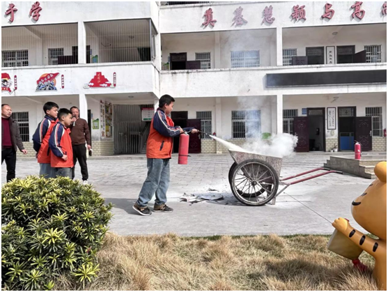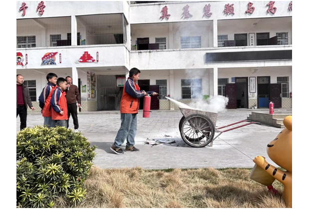 疏散演練結束后,學校在操場組織了滅火實操演練。演練小組提前準備好了火盆、滅火器等器材。學校相關負責人向師生們現場講解了干粉滅火器的正確使用方法、滅火步驟及注意事項,強調了“提、拔、握、壓”的操作要領。隨后,學生代表在老師的指導下,親自操作滅火器進行現場滅火,成功撲滅了火盆中的明火。通過“理論+實操”的方式,師生們不僅學到了防火知識,更掌握了撲救初起火災的實際技能。
